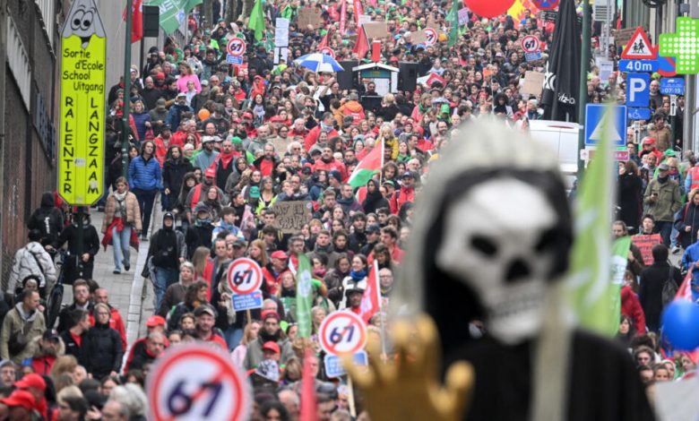 إضراب وطني شامل مناهض للسياسات الحكومية التقشفية ببلجيكا.
