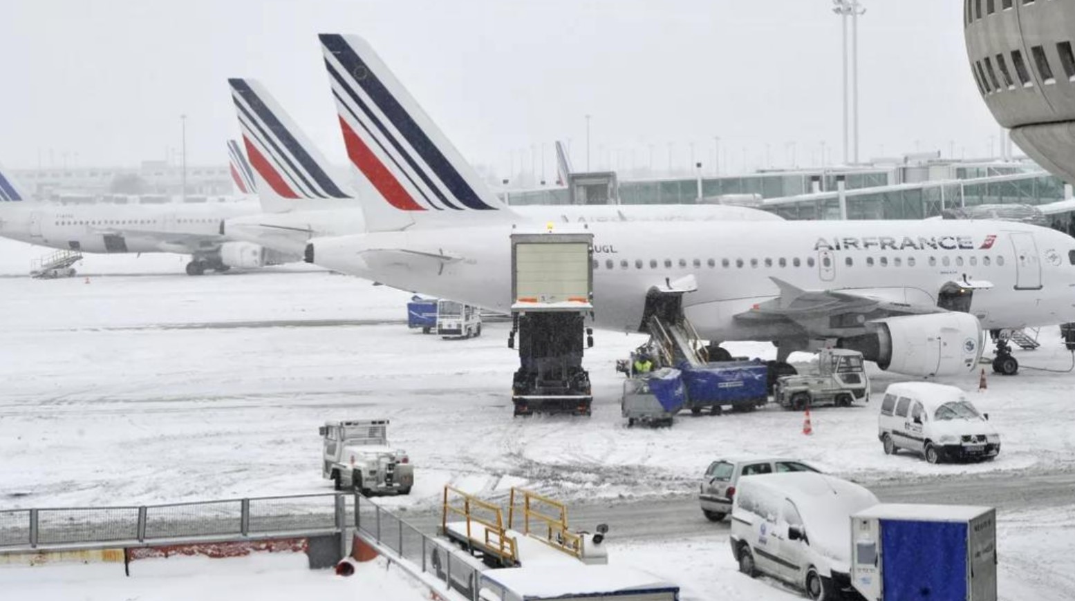 أعلن وزير النقل الفرنسي، فيليب تابارو، عن إلغاء نحو 100 رحلة جوية صباح اليوم الأربعاء في مطار رواسي شارل ديغول، إضافة إلى 40 رحلة في مطار أورلي بباريس، بسبب تساقط الثلوج.