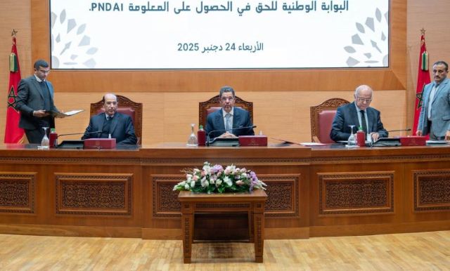 أشرف كل من الرئيس المنتدب للمجلس الأعلى للسلطة القضائية محمد عبد النباوي والوكيل العام للملك لدى محكمة النقض رئيس النيابة العامة هشام البلاوي وعمر السغروشني رئيس لجنة الحق في الحصول على المعلومات، يوم الأربعاء 24 دجنبر 2025 بمقر المجلس الأعلى للسلطة القضائية على حفل توقيع اتفاقية شراكة تروم انضمام مكونات السلطة القضائية إلى البوابة الوطنية للحق في الحصول على المعلومات، تكريسا للحق الدستوري للمواطنات والمواطنين في الولوج إلى المعلومة.