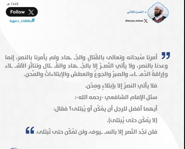وزاد:”كما استند أيضا على قول للإمام الشافعي دون ذكر المصدر، و حتى لو كان فإن معناه لا علاقة له بإراقة الدماء، و نثر الأشلاء، وبذلك يكون مستغلا لإيحاءات دينية موظفا إياها خارج سياقها و هدفها” .