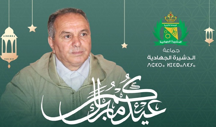 تهنئة السيد، أبراهيم الدهموش، رئيس جماعة الدشيرة الجهادية، مرفوعة إلى السدة العالية بالله، بمناسبة عيد الفطر المبارك.