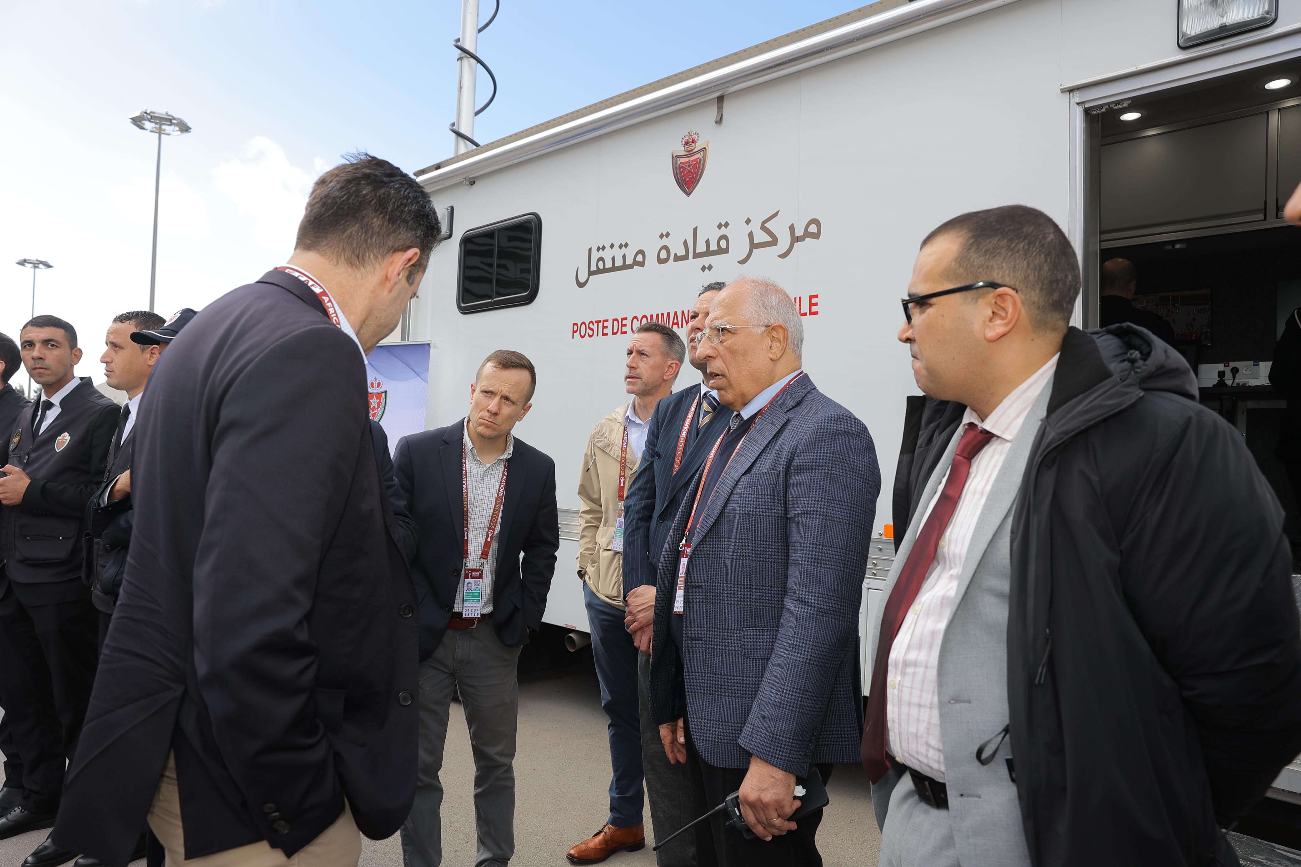 وقد استهل وفد مكتب التحقيقات الفيدرالي الأمريكي زيارته للمغرب بالاطلاع بشكل مباشر وميداني على مختلف مكونات منظومة الأمن المعتمدة بملعب الأمير مولاي عبد الله بالرباط بالتزامن مع مباراة المغرب وتنزانيا، خصوصا الجوانب المتعلقة بانتشار فرق الأمن ومستويات المراقبة الأمنية واستعمال أنظمة المراقبة البصرية بالطائرات المسيرة والكاميرات عالية الدقة، فضلا عن الوقوف على آليات التواصل والتنسيق الإلكتروني بين هذه المكونات الأمنية من خلال مراكز القيادة الثابتة والمتنقلة.