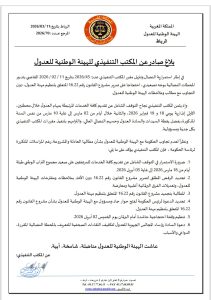 وجاء في بلاغ صادر عن المكتب التنفيذي للهيئة، بتاريخ 11 مارس 2026 بالرباط، أن هذا القرار يأتي في سياق استمرار المحطات النضالية التي يخوضها العدول منذ أسابيع، بعد ما وصفته الهيئة بـ”غياب التفاعل الجدي” مع المراسلات المتكررة الموجهة إلى رئاسة الحكومة بشأن مطالب المهنيين وملاحظاتهم على مشروع القانون المذكور.